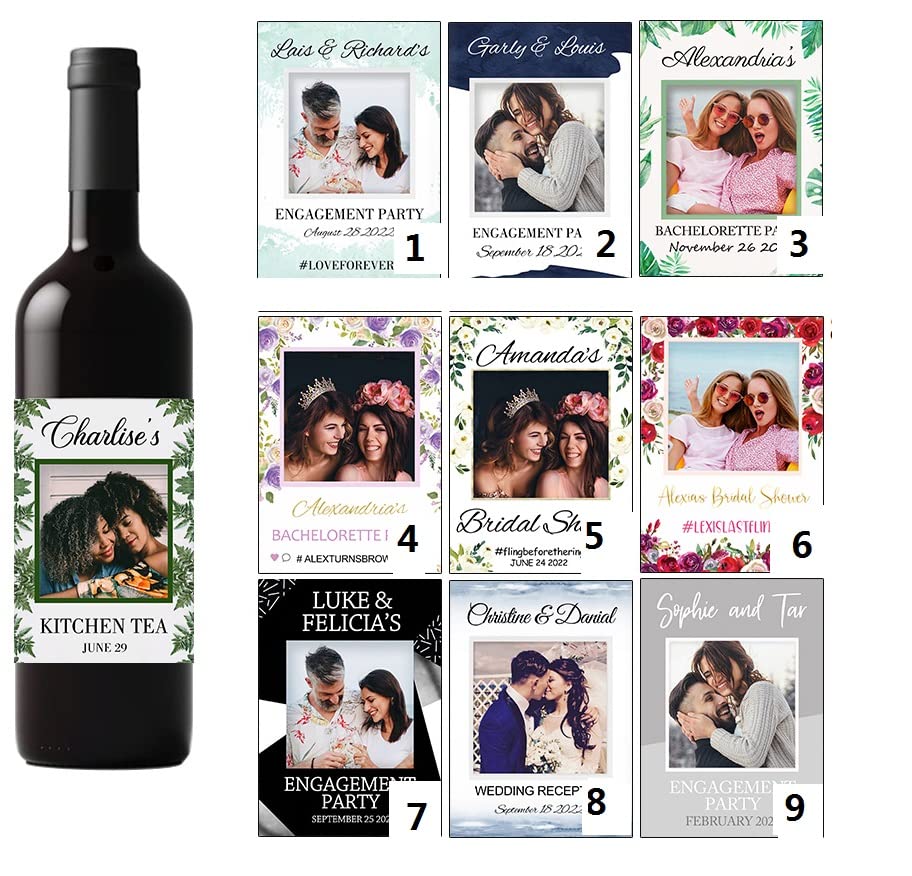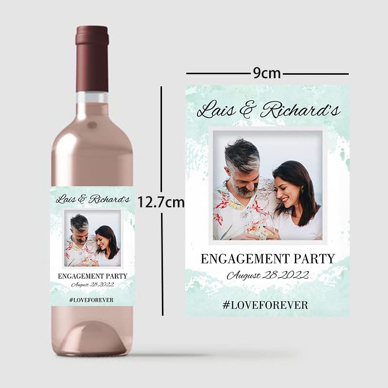Specification: 20 stuks aangepaste wijnfles stickers/gepersonaliseerde bruiloft verloving partij afdrukken foto feest/verloving bruiloft verjaardag paar stickers decor labels aangepaste foto tekst