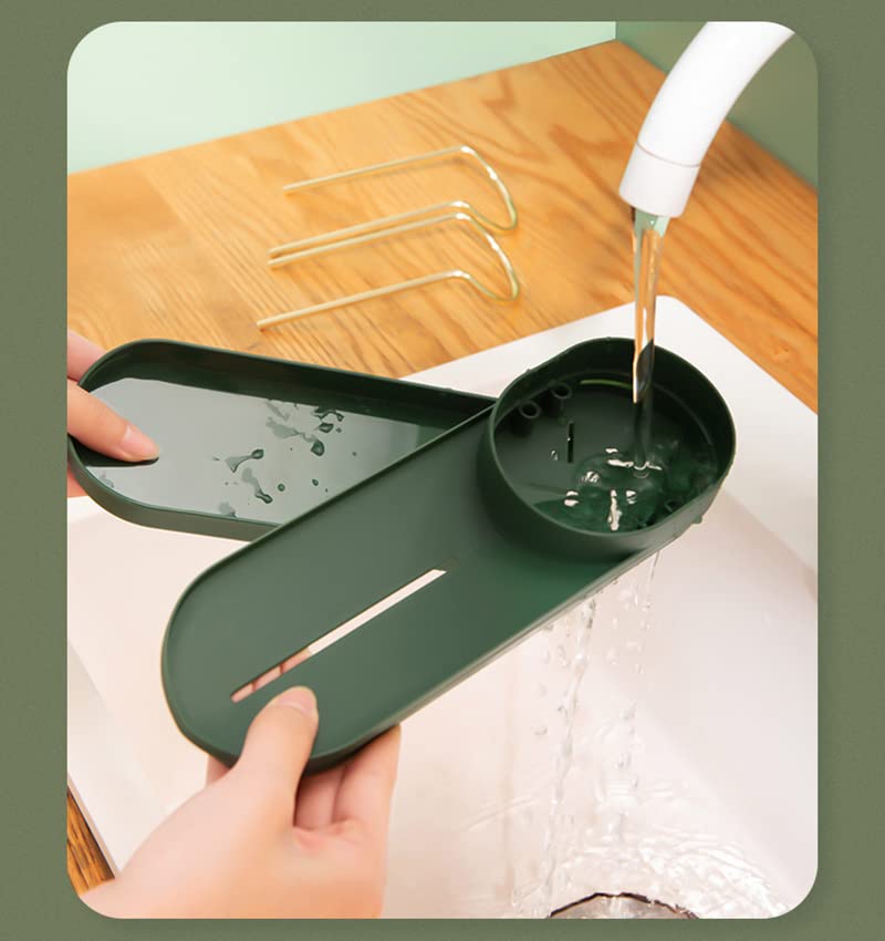 De gootsteenstandaard kan in de keuken worden geplaatst om theedoeken, borstels, lepels en andere voorwerpen te organiseren, het werkblad te organiseren en water af te voeren, voor een schonere en hygiënische reiniging.