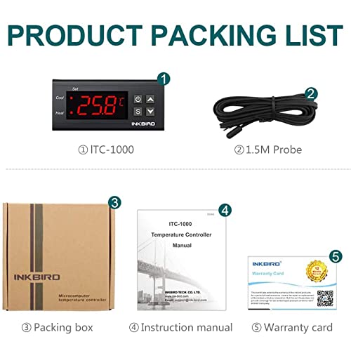 Specification: Inkbird ITC-1000 Digitale temperatuurregelaar, 2 relais, thermostaat, 220 V, verwarmingskoeling met NTC-sensorsonde