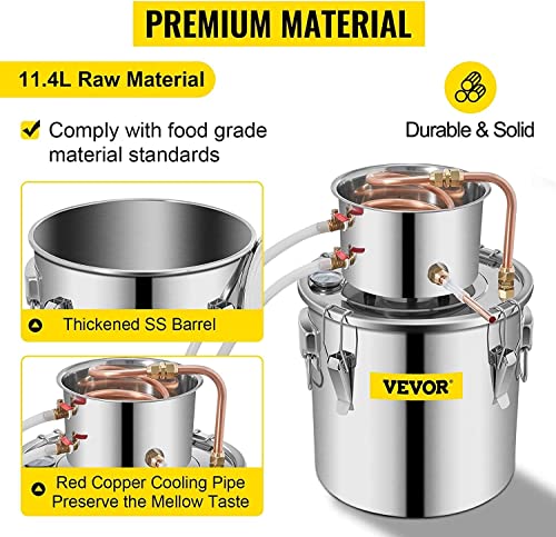 Specification: VEVOR Waterdistilleerder 12.3L moonshine still distiller roestvrijstalen waterdestilleerder 3.3 GAL distilleerder Automatische verwarming Waterdestilleerder 304 Roestvrij staal Waterbereiding