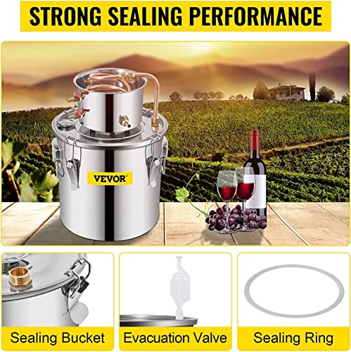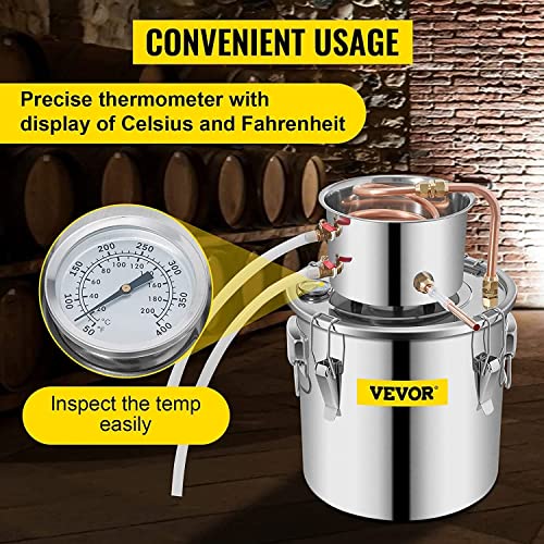 VEVOR Waterdistilleerder 12.3L moonshine still distiller roestvrijstalen waterdestilleerder 3.3 GAL distilleerder Automatische verwarming Waterdestilleerder 304 Roestvrij staal Waterbereiding